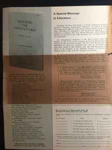 In yesterday’s book, Kohl’s Teaching the “Unteachable,” I found two half-century old fossils. The first is a trifold letter-size prospectus for Kohl’s book.