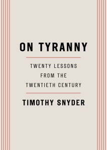 Yesterday, in a single sitting, I read Timothy Snyder’s On Tyranny. It’s by far the most useful and engaging examination I’ve read of democratic decline and of the need for resolute resistance against its collapse. Snyder draws his lessons from deep study of the European catastrophes that piled, one atop the other, from 1914 to 1991, a scholarly career that culminated, in 2010, with Bloodlands: Europe Between Hitler and Stalin.