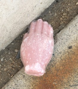 So, when I found a dolly’s severed hand on the sidewalk two blocks from my house, I thought immediately of Popa. Though broken off from the larger object, it is now a thing of itself, whole and entire, belonging, for the moment, to nothing else. This plastic hand bent the remainder of my day into its orbit, a metaphor come to life.