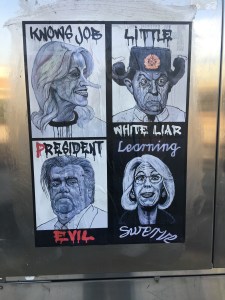 Ai Weiwei is just one example of the political street art that has come roaring back since Trump took power. Robbie Conal is back in fine form with scathing posters reminiscent of his best work during the Reagan Administration. (Who can forget “Women With Teeth” and “Men Without Lips”?) Here are two