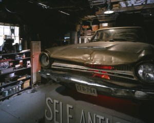 For years, the L.A. County Museum of Art displayed Michael C. McMillan’s “The Central Meridian.” It is… a garage, complete with an old car, creosote-treated timbers, rough-made shelves and empty oil cans. When I first wandered in – this would have been thirty years ago – I couldn’t figure out why an art museum would collect a reproduction of such a familiar space. Apart from some visual editorializing, the “installation” seemed to reproduce the very garage that sheltered our own ’65 Dodge Dart. McMillan’s garage is, of course, a still-life. Midcentury American garages warehoused an entire idea of American ingenuity, masculinity, and erotic suggestion. The life stilled in McMillan’s ersatz garage is an outtake from the American dream.